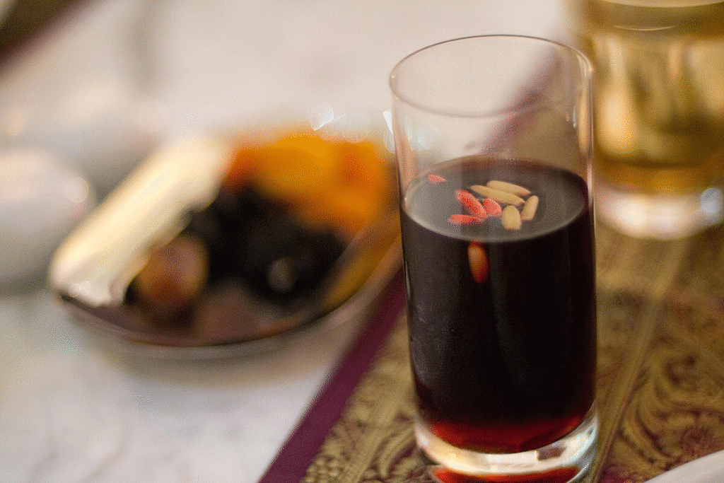 Sirup anggur menambah dimensi rasa pada Jallab. Kombinasi antara manisnya kurma dan segarnya anggur menciptakan keseimbangan rasa yang unik.